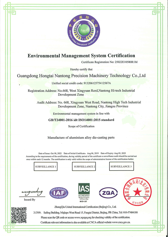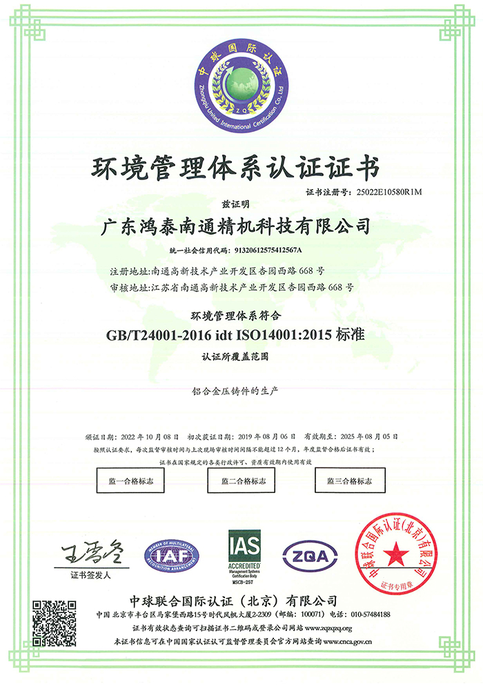 ISO14001認證證書(shū)
